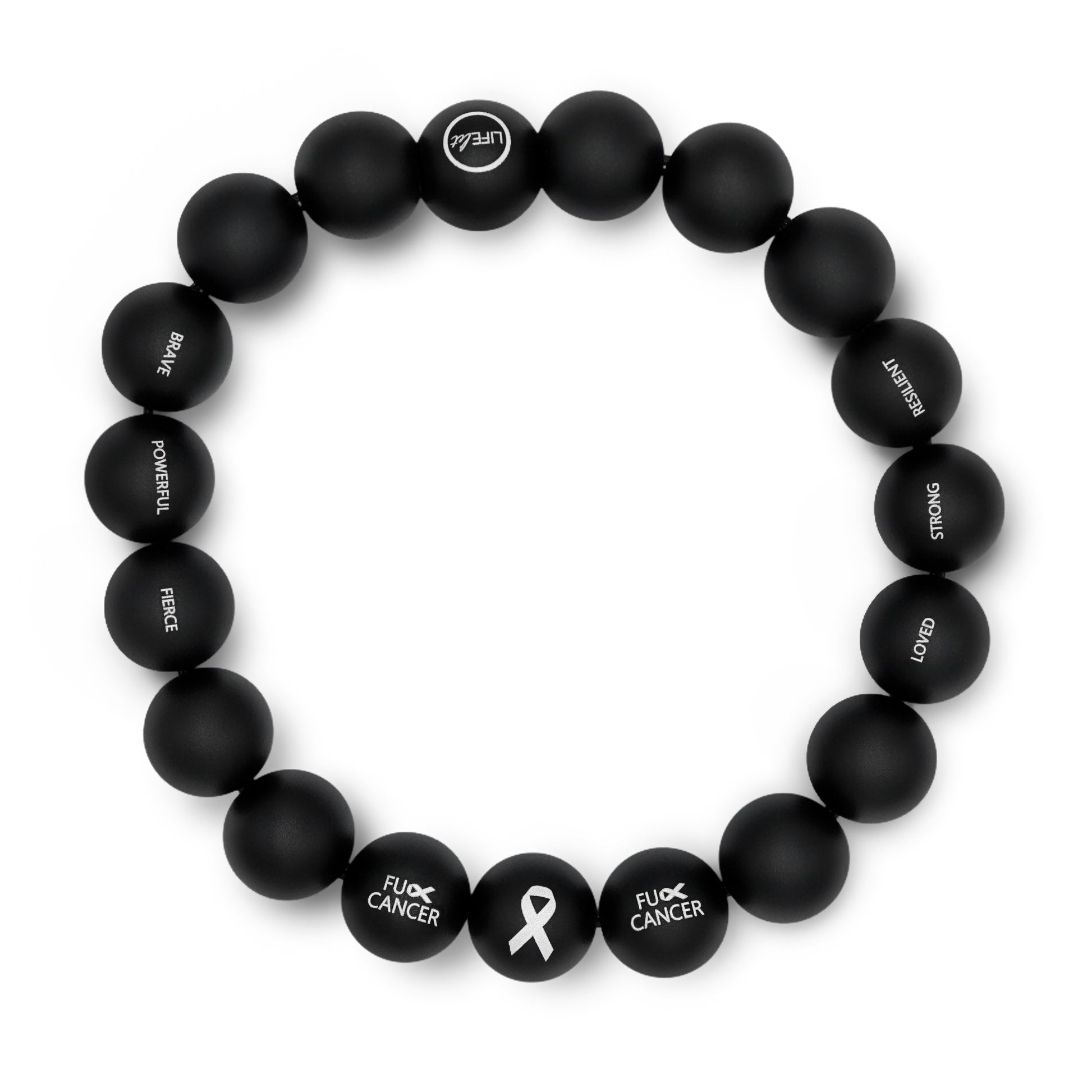 These bracelets are designed to bring motivation to anyone facing the cause, no matter what part of the journey they may be on or for anyone who is supporting the cause in some way. This bracelet includes 6 motivational words (along with some extra "feelings" towards cancer):